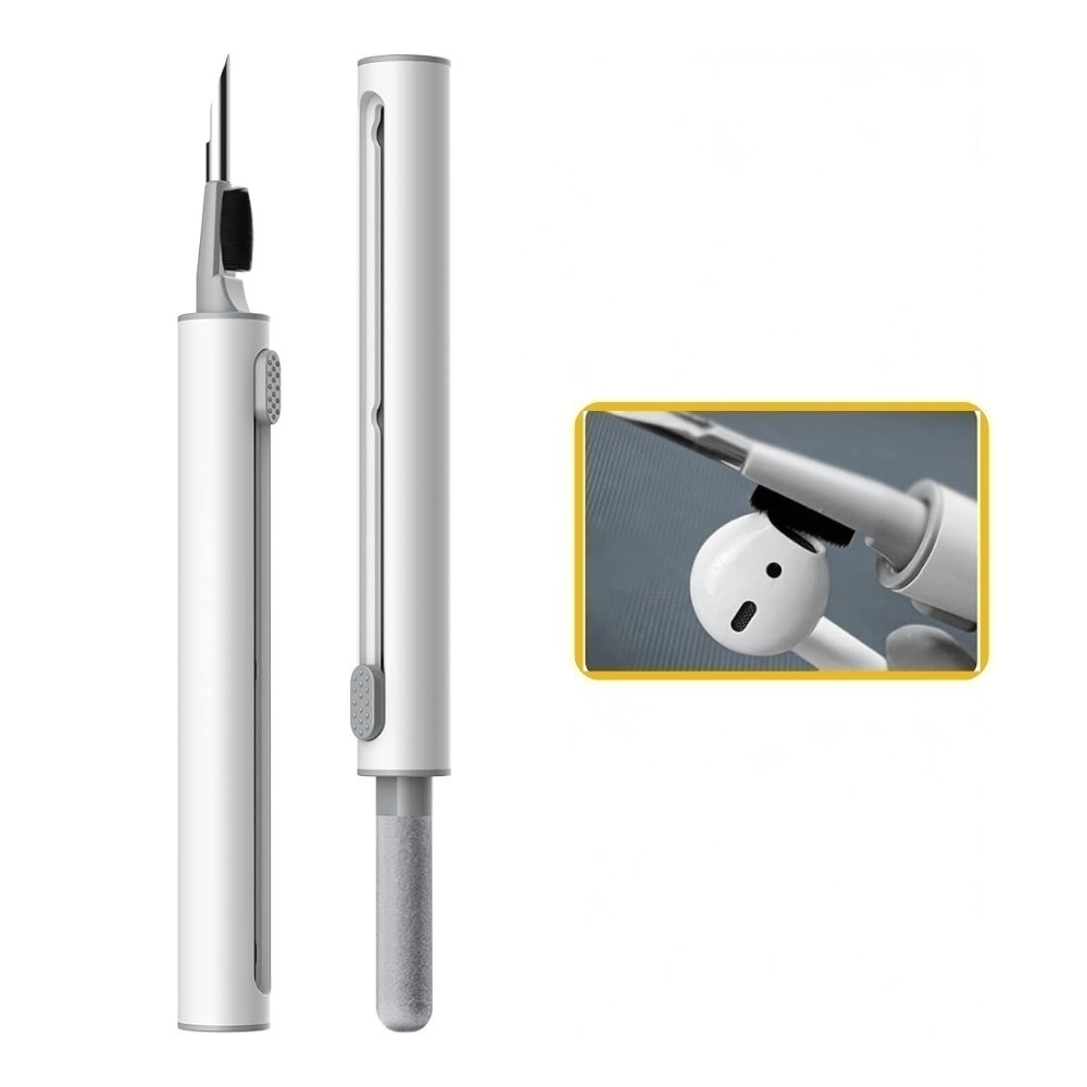 Ideal para limpiar orificios pequeños.Alta calidad: No daña los componentes de los dispositivos ni los agujeros.Ligero y portátil: diseño en forma de bolígrafo, es ligero y fácil de llevar.Se puede utilizar en cualquier momento y en cualquier lugar.Adecuado para auriculares Bluetooth, auriculares, teléfono celular, computadora, tableta, cámara y otros productos digitales.Cepillo suave y esponja: hay un cepillo de microfibra suave por encima de la punta del bolígrafo, que puede limpiar profundamente las partes pequeñas y los agujeros de los auriculares.En el otro extremo del bolígrafo hay un cepillo suave y ligero que limpia el contenedor de carga.Limpieza de 360 grados: bolígrafo de limpieza bien diseñado, ahorra mano de obra, ayuda a limpiar zonas de difícil acceso o cualquier otra esquina. Es imprescindible para cualquier persona que use auriculares.Nunca utilices líquidos para limpiar los auriculares.Amplia gama de aplicaciones: este bolígrafo de limpieza no solo puede limpiar los auriculares, sino también la caja de carga de auriculares, auriculares de teléfono celular, micrófonos, etc.