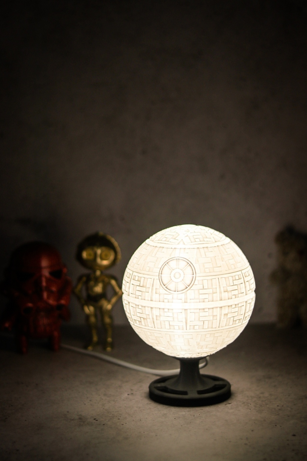 Lámpara Estrella de la MuerteDescubre la Lámpara Estrella de la Muerte, una impresionante pieza de iluminación diseñada exclusivamente por Baradero 3D. Este producto, realizado mediante impresión 3D en plástico, no solo es funcional, sino que también es una obra de arte moderna que transformará tu espacio.Características destacadas:Iluminación LED: Incluye un foco LED de larga duración (20,000 horas), que ofrece una luz brillante y eficiente.Base Roscada: La base impresa en 3D cuenta con una rosca fija, facilitando el cambio de foco cuando lo necesites.Lista para usar: Viene con interruptor y está lista para enchufar, sin complicaciones.Dimensiones:Diámetro: 15 cmBase: 10 cm de diámetro y 5 cm de altoAltura total: 19 cm (aprox)No pierdas la oportunidad de iluminar tu hogar con esta lámpara única. ¡Hazla tuya hoy mismo!